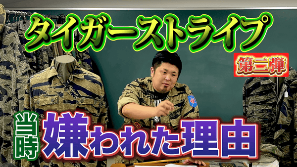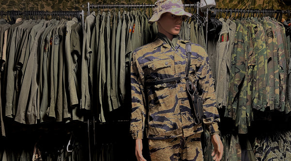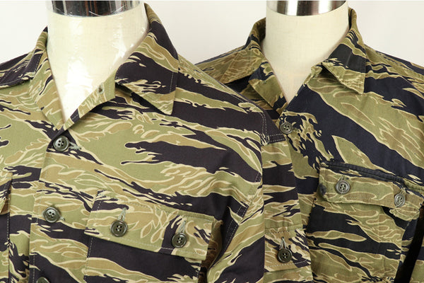 Tiger stripes used in the Vietnam War are our most focused product. We sell not only vintage Tigers, etc., but also precisely reprinted reproductions made in Japan, as well as manufacturing and selling reprinted novelty clothing of the period.