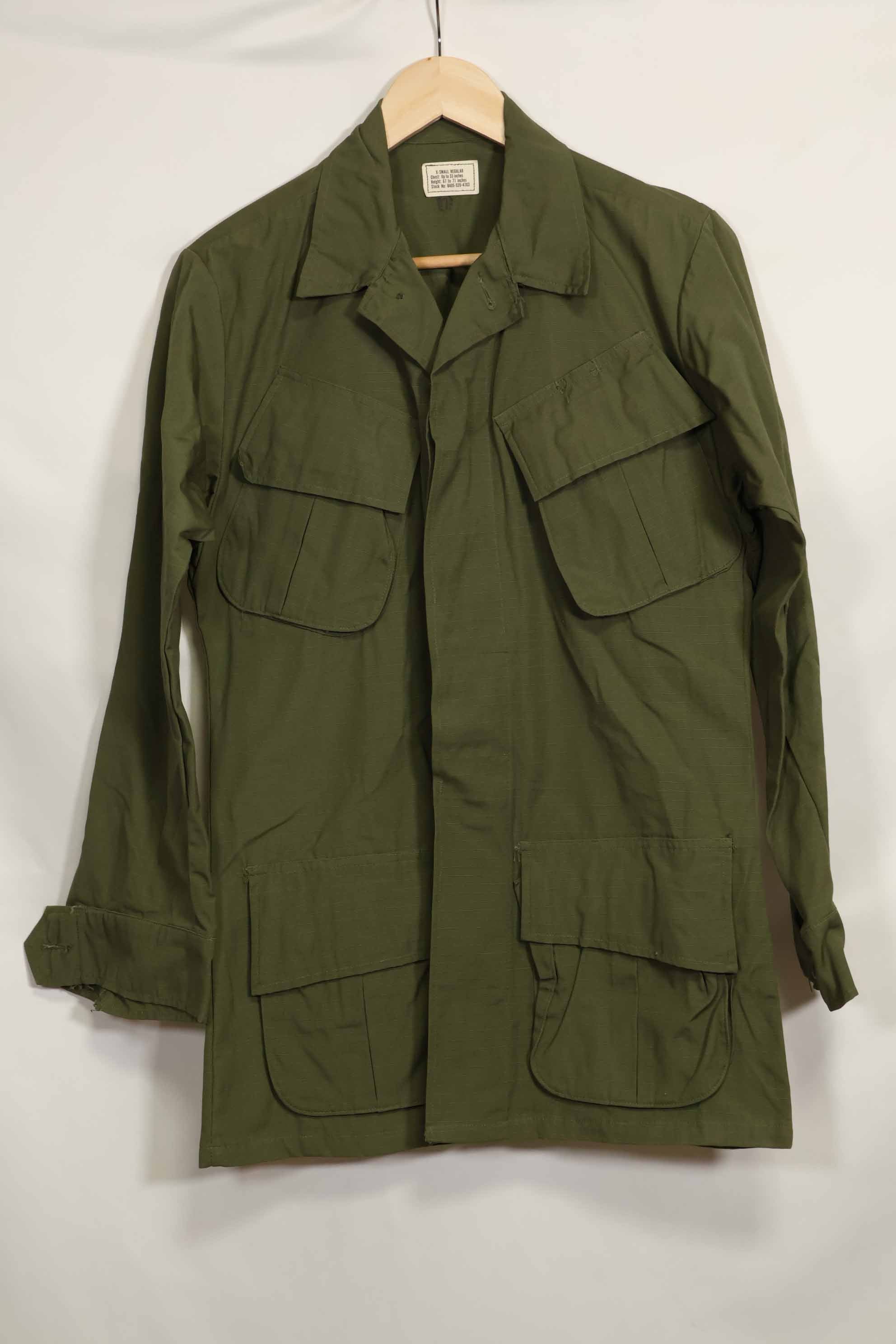 This is a 4th Model Jungle Fatigue Jacket from a 1969 contract. It is in very clean condition with some tanning. There are few wrinkles and the lot is in relatively good storage condition. It is a small size, so it is suitable for women.